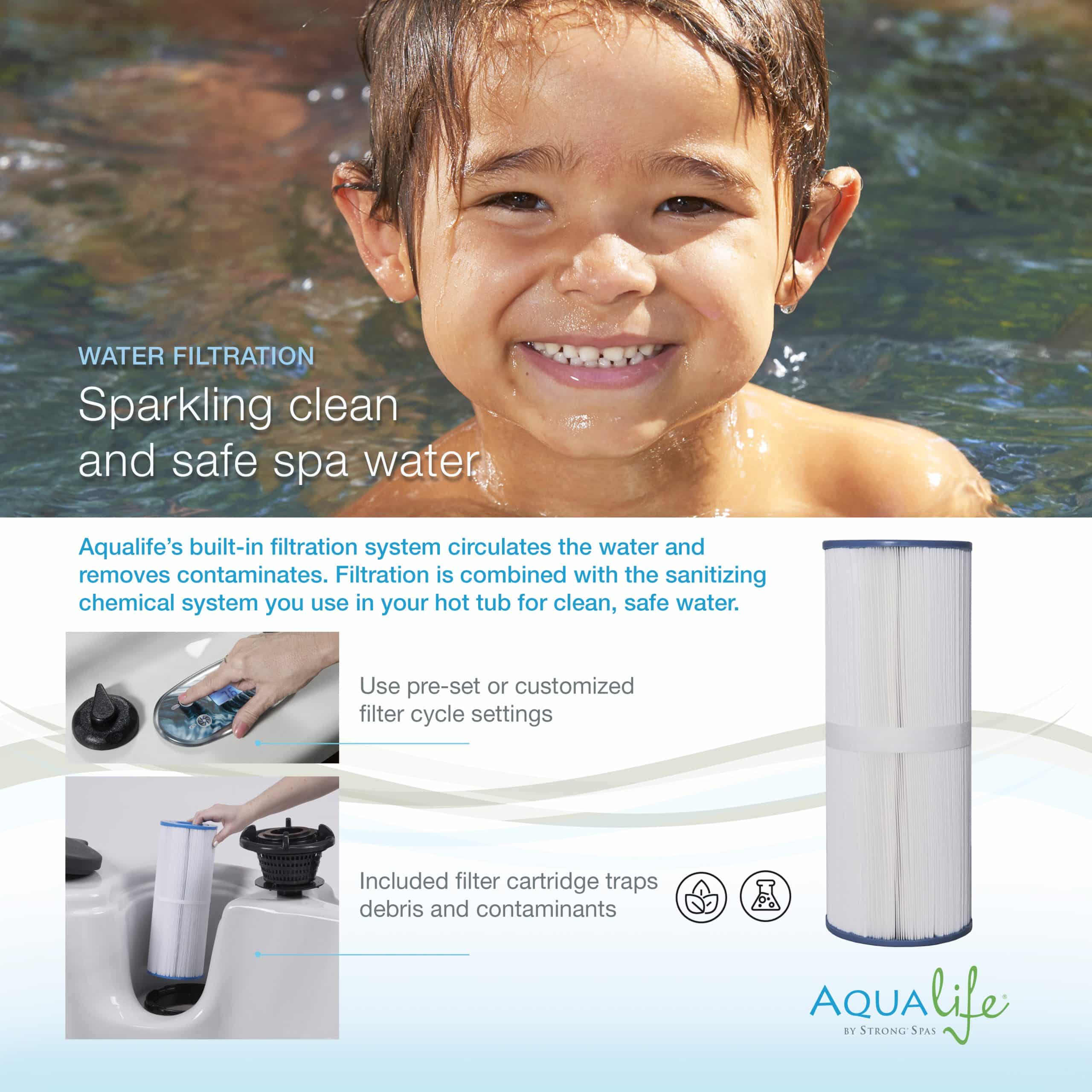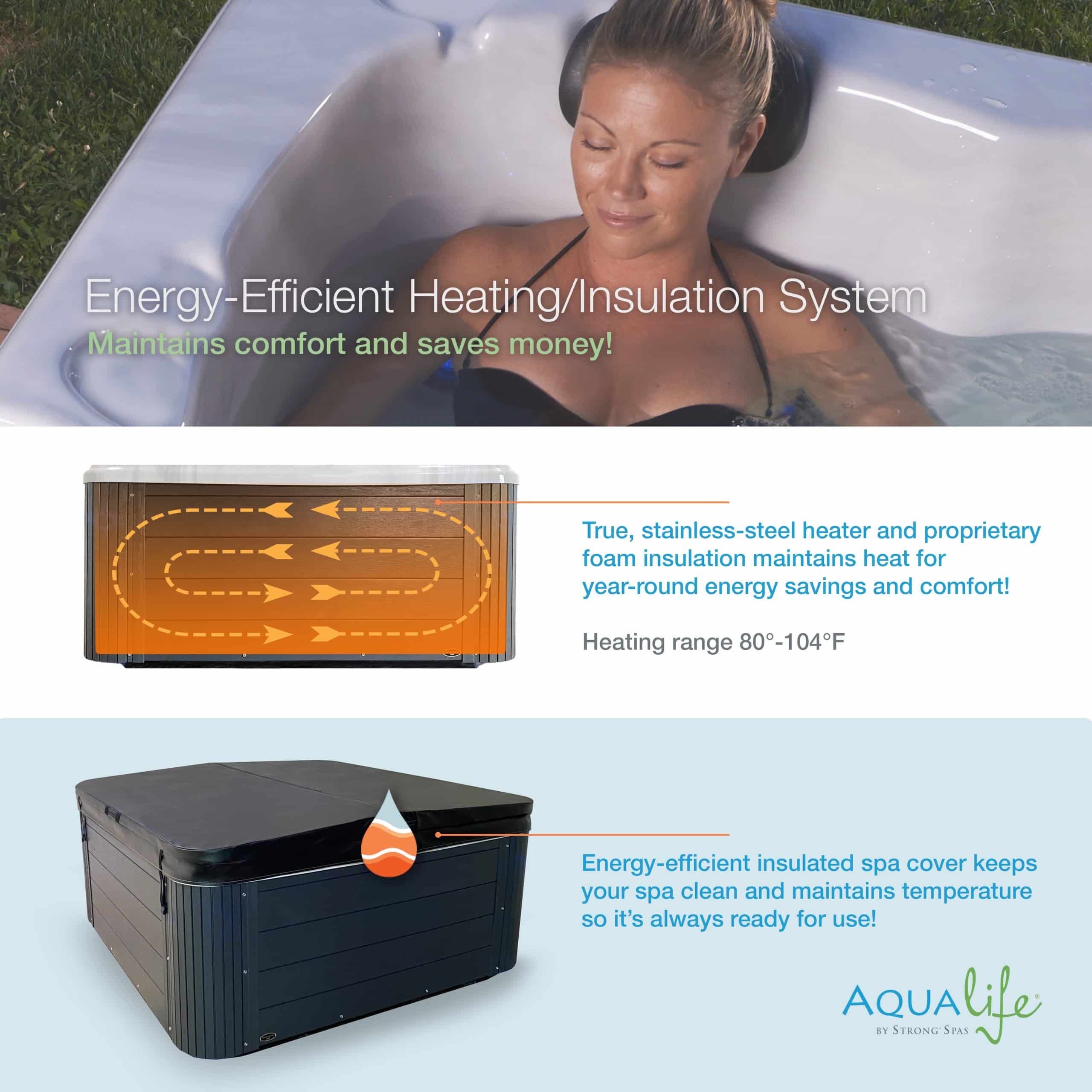 Control your spa experience effortlessly with the user-friendly backlit digital topside control. The color-changing LED underwater light adds ambiance, enhancing your relaxation experience, especially at night. The spa’s UV-resistant and maintenance-free cabinets are built to withstand the elements, ensuring durability for year-round outdoor use. A factory-installed ozonator and a high-quality filtration system simplify maintenance, keeping your water clean and reducing the need for harsh chemicals. The tapered insulated locking spa cover helps maintain water temperature, keeps debris out, and enhances safety.